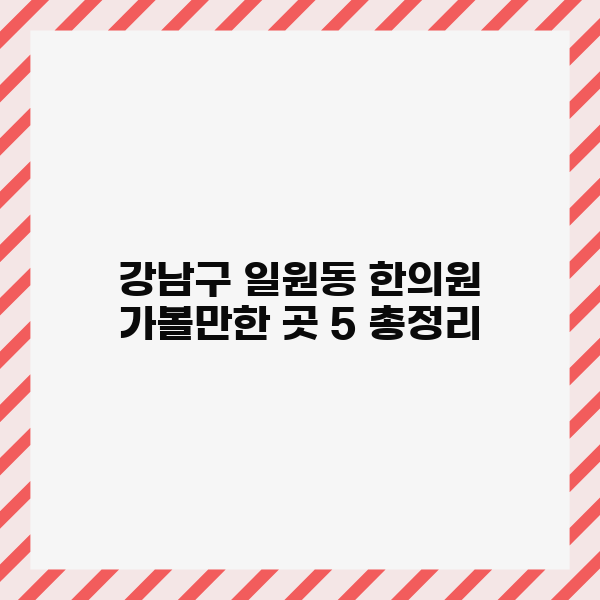 이제 본격적으로 강남구 일원동의 추천 한의원들을 살펴보겠습니다. 여러분의 건강과 행복을 위해 선택한 이곳들이 어떤 특별함을 지니고 있는지, 기대감을 가지고 함께 알아보시죠!