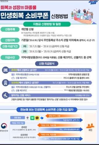 | 2025년 7월 21일 (월) | 1차 지급 온라인 신청 시작 (오전 9시부터) | 카드사/지역화폐 앱 |